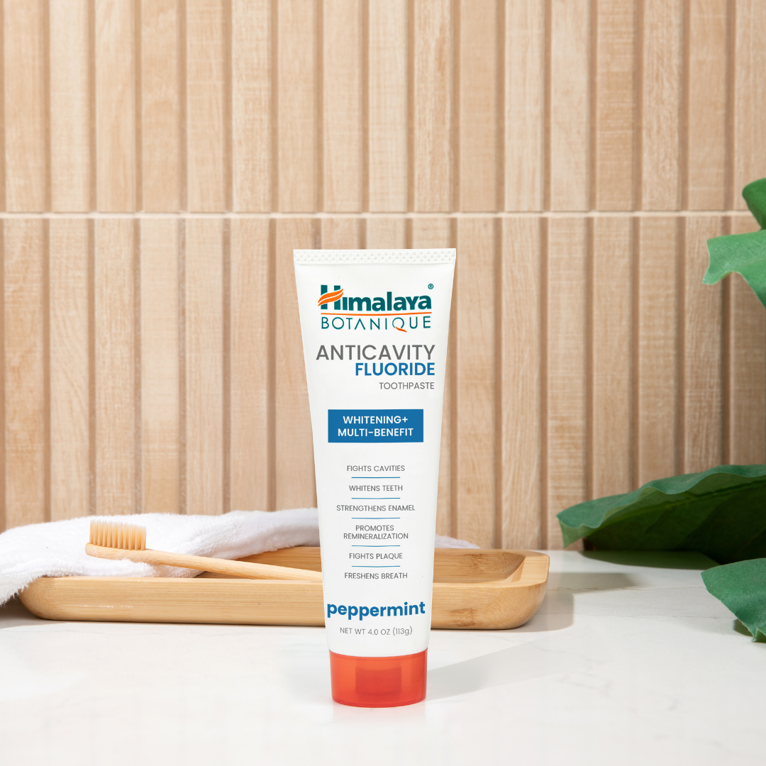 Discover Himalaya Botanique Anticavity Fluoride Peppermint Toothpaste, a refreshing blend that pairs Fluoride with gentle, botanical ingredients for a holistic approach to oral care. This comprehensive formula provides six key benefits: it helps prevent cavities, strengthens enamel, supports remineralization, brightens your smile, combats plaque with regular brushing, and refreshes your breath. With its crisp, bracing peppermint flavor, it ensures your mouth feels exceptionally clean and invigorated.