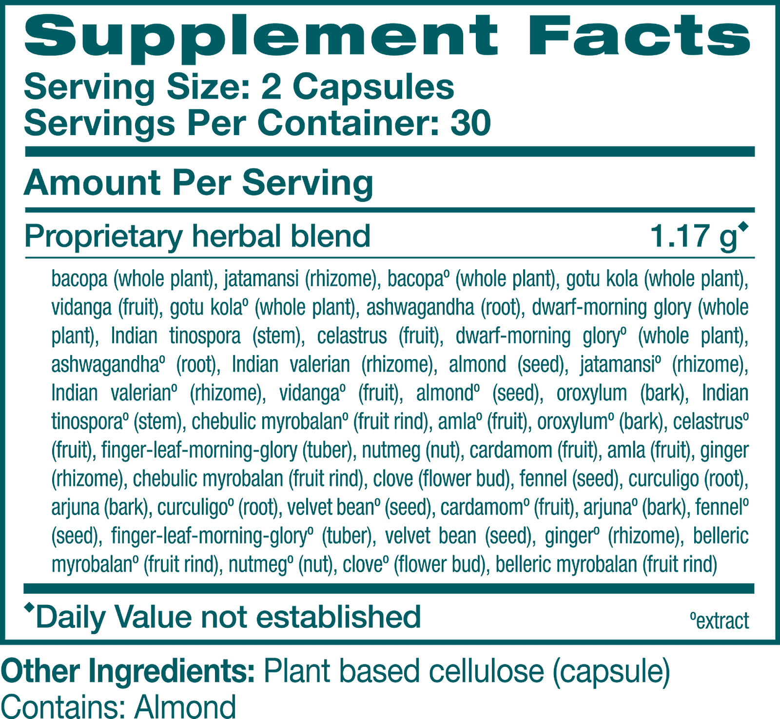 Non-GMO Project verified with Bacopa, Ashwagandha, Gotu Kola and other herbal ingredients