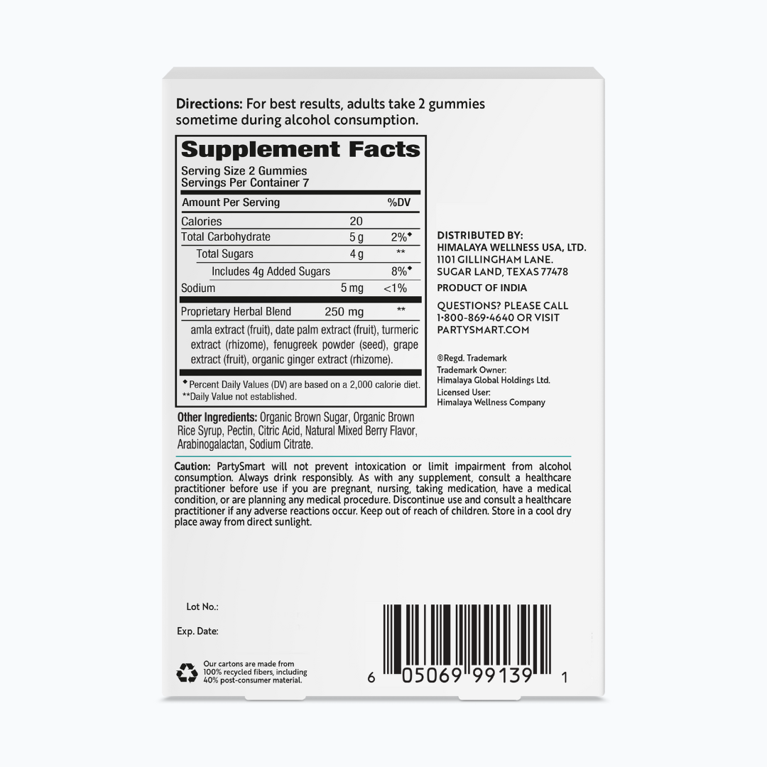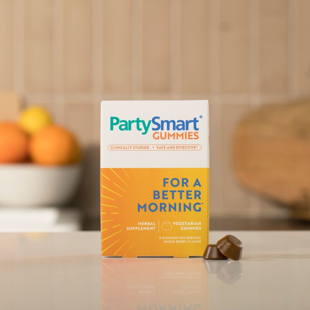 Put the fun back into your celebrations! PartySmart Gummies, give you an easier morning after a night out. The herbs in PartySmart Gummies support the liver's ability to process alcohol while you're sleeping, so you wake up with smiles, comfort and energy. It's a new way to enjoy the same quality found in our beloved PartySmart Capsules, in an easy-to-take, convenient gummy. Make sure you carry some along to your next special celebration.*