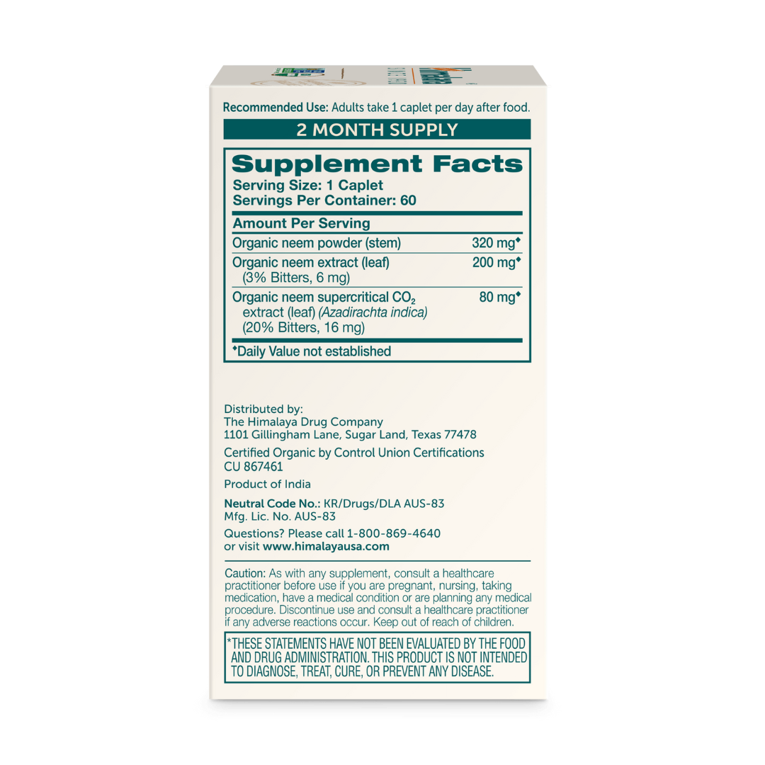 Himalaya Organic Neem uses a combination of organic Neem stem powder, organic Neem leaf extract and organic Neem supercritical C02 extract instead of just the simple crushed Neem you may find on its own in other supplements, making it an excellent choice for mild acne and skin blemishes.*