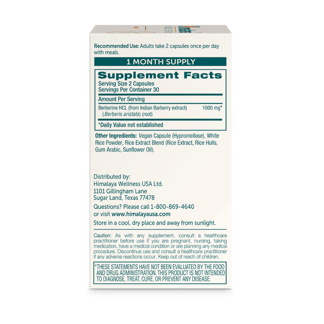 Himalaya Berberine is made from Indian Barberry extract in a 2-capsule a day supplement featuring Berberine 500 mg in each vegan capsule.