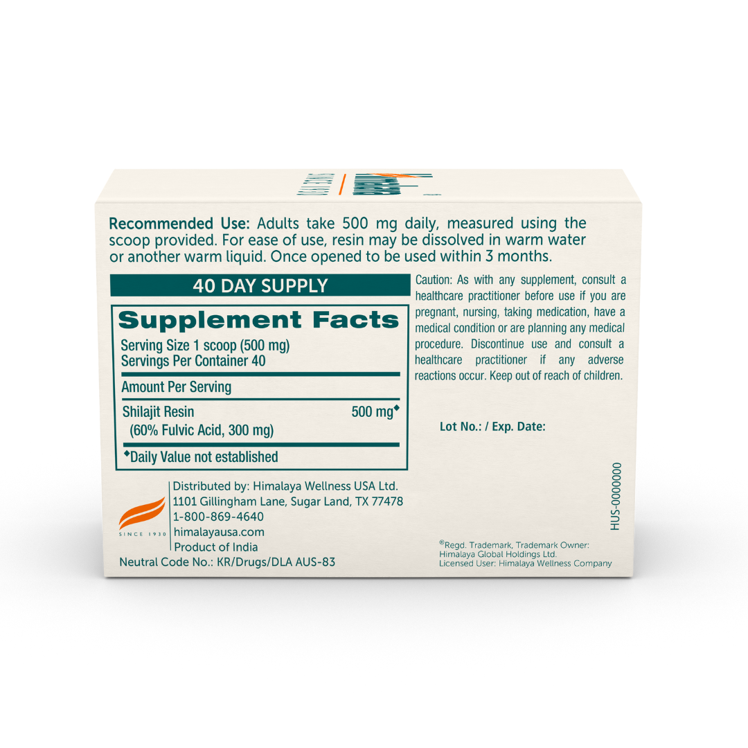Himalayan Shilajit Resin is formulated to support energy levels and vitality with a unique blend of Fulvic Acid. Each serving delivers 500 mg of Shilajit resin, ensuring you receive the benefits of this ancient superfood as part of your daily routine.*