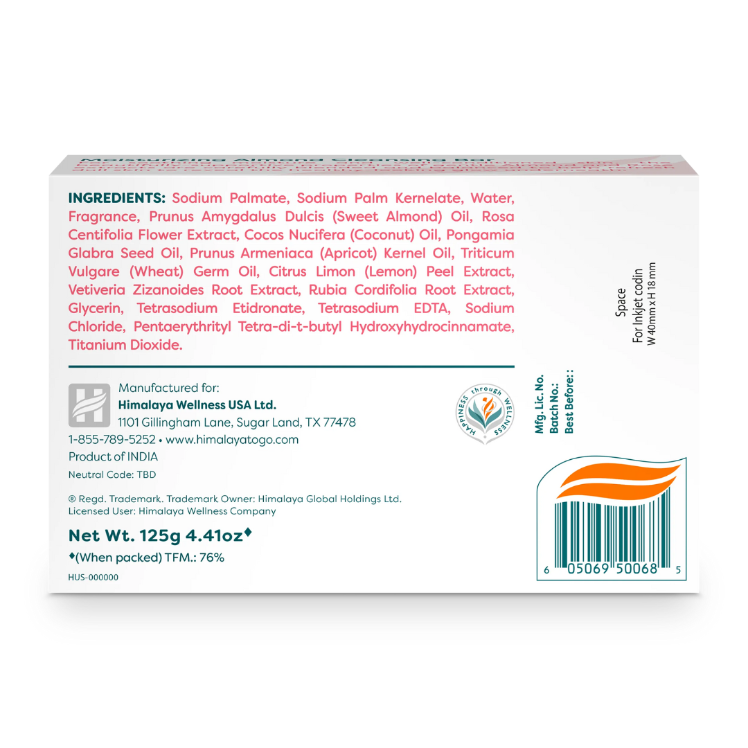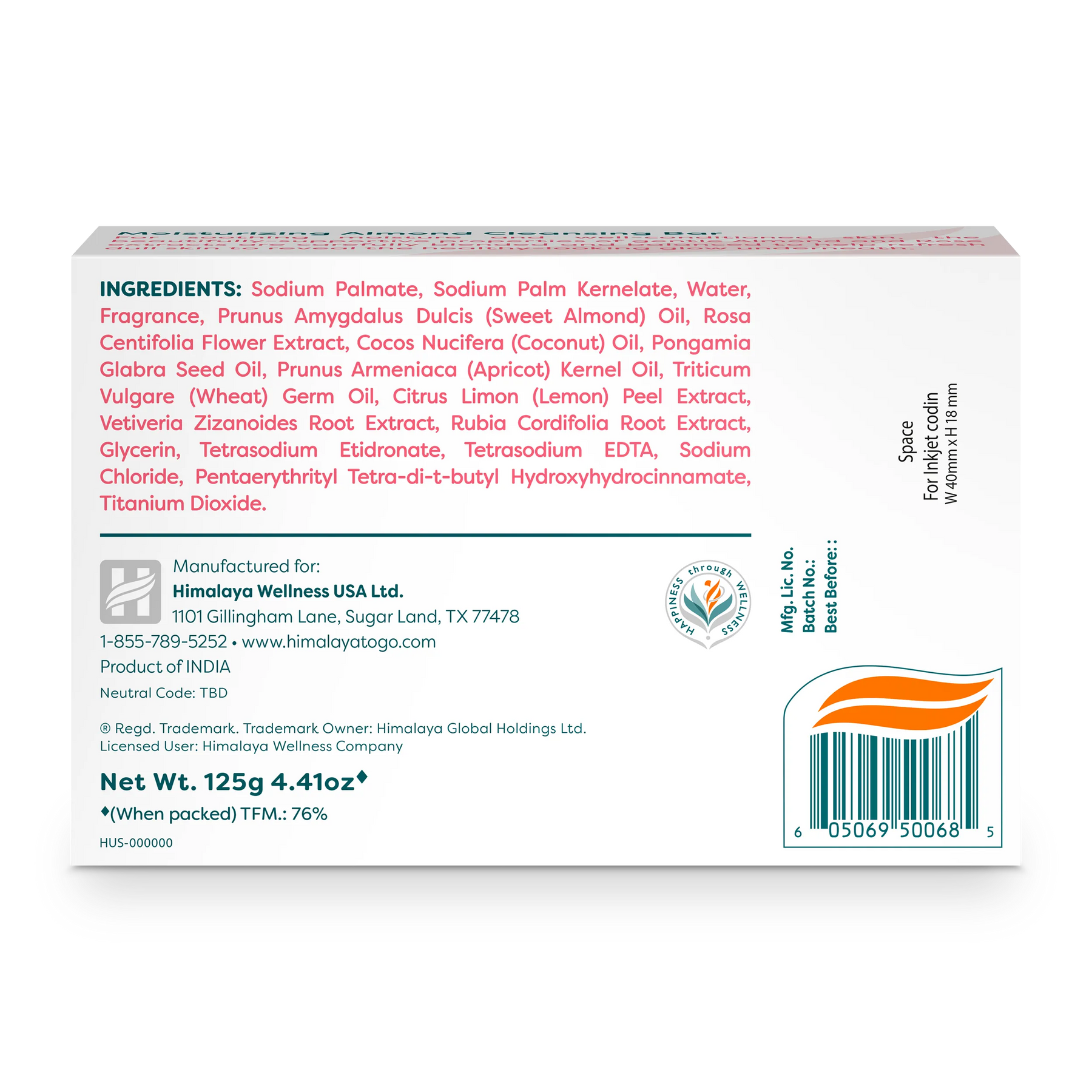 Sweeten your daily cleansing routine with Himalaya Moisturizing Almond Cleansing Bar, lovingly crafted for all skin types. The soothing properties of Almond and Rose extracts refresh your senses and add soothing moisture and a comforting fragrance. Transform daily washing into something truly special with this beautiful cleansing and conditioning botanical bouquet.